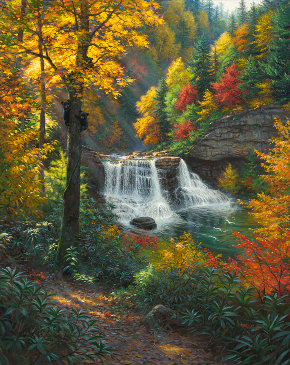 With the first inhabitants of our land, Yona Ugadaleyv (Cherokee for Bear Valley) may have been what this place was called, as black bears have always filled the mountains. Surrounded by beauty and adventure, both early man and we today can enjoy a sense of timelessness and connectedness to all who have pondered the power and beauty of Black Water Falls in West Virginia. For centuries, this spot has been a place of solitude and reflection – “Why am I here?” “Where did I come from?” are but a few of the many questions man has pondered in these remote places of beauty. I hope that Bear Valley becomes such a spot for you, hanging in your home where you can take a quiet moment and admire the handiwork of our Creator. So put the camera away and just soak it in. Let yourself just “be” in the moment here in Bear Valley.