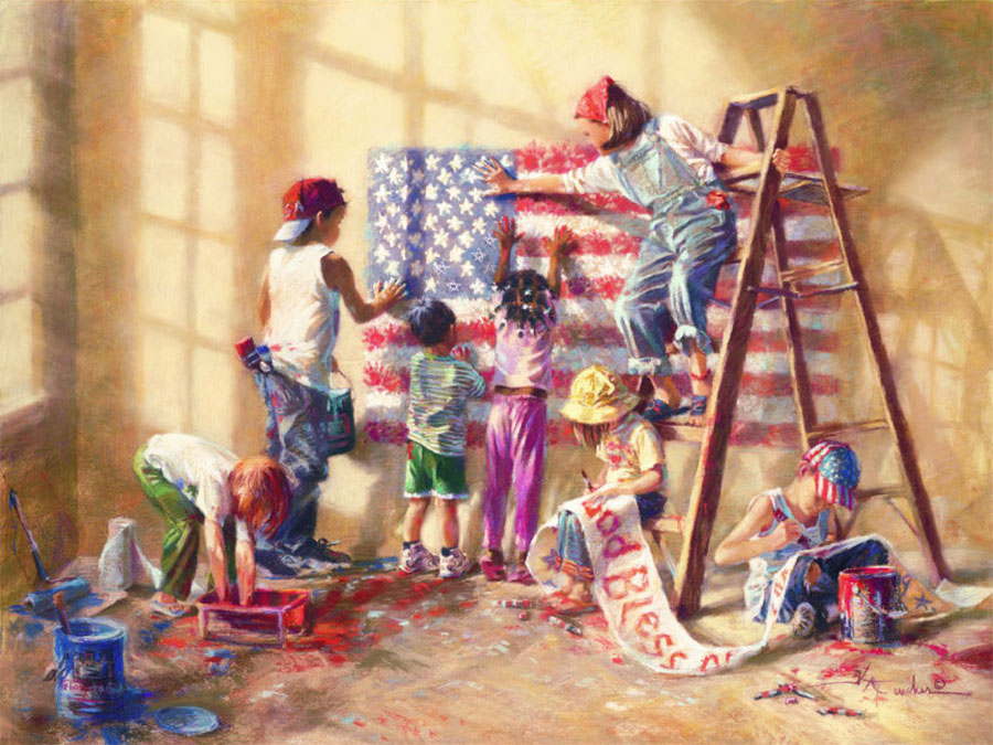 Illustrator Norman Rockwell painted illustrations that became a comfort to weary Americans following WW II. In the same light, I wanted to encourage today’s generation during this tragic time.   A blank canvas sat before me for a very long time as I contemplated what the heart of the message would be.